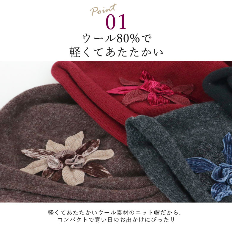 お花モチーフニット帽(おばあちゃん 帽子 シニアファッション 70代 80代 60代 送料無料 ハイミセス 秋冬 婦人 レディース お年寄り 高齢者 誕生日プレゼント 祖母 暖かい 防寒 あったか 敬老の日 プレゼント ギフト 実用的