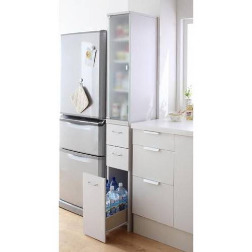食器棚 キッチンストッカー 調味料 カップボード スリム すき間 収納 ラック ガラス 扉 タイプ 幅25 cm 可動棚 ホワイト 白 ミニ ミニタイプ